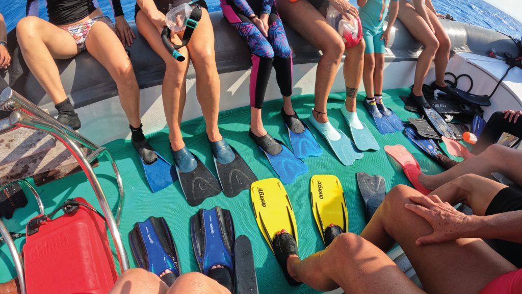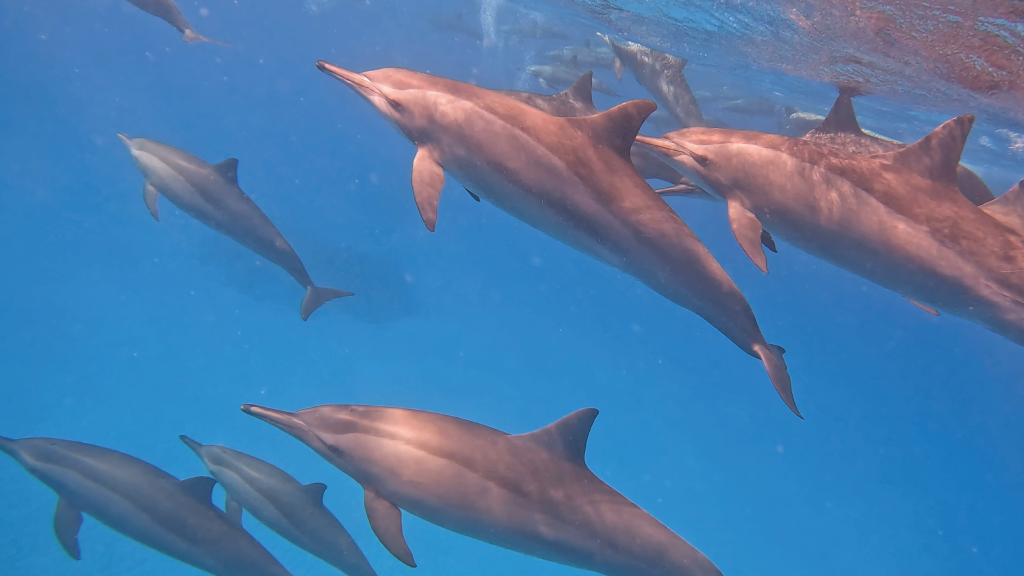 Da bambina sognavo un incontro così, e non avrei mai immaginato di vivere un’esperienza tanto intensa. Durante questo ritiro con Elena abbiamo trascorso una settimana in Sataya, una laguna meravigliosa, dalle infinite sfumature d’azzurro. Ogni mattina e ogni pomeriggio uscivamo e, in pochi minuti, raggiungevamo i delfini: erano centinaia! Mamme con i loro piccoli, adulti che giocavano tra loro e che si avvicinavano a noi. Giorno dopo giorno si è creato un legame speciale, e la gioia di riconoscere gli stessi delfini dalle pinne o dai segni sulla pelle rendeva gli incontri ancora più emozionanti. Entrare in sintonia con loro e, a tratti, sentirmi parte del loro branco è stata una sensazione indimenticabile.